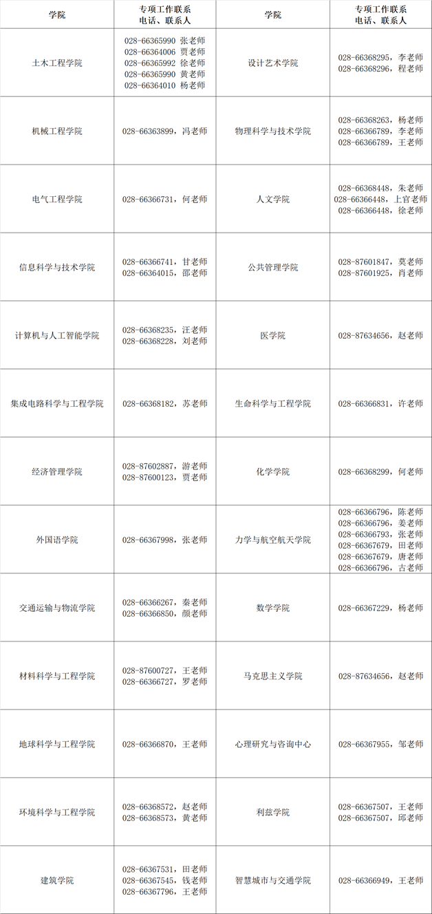 符合条件的学生如需选课,请联系各自的学院团委,联系电话和联系人如下:
