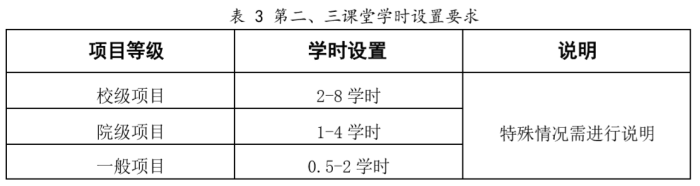 第十一条 学时设置原则为1学时对应1个小时的项目,以0.5学时为单位设置,具体要求见表 3 所示。