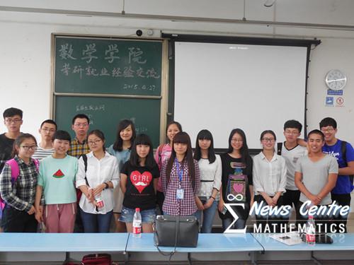 此次“考研就业经验交流会”邀请到2011级考研和就业的优秀学生代表做考研、就业的经验介绍,出席本次交流会的还有数学学院团委书记徐海晶老师。