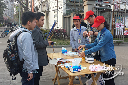 3月20日上午11时,由生命科学与工程学院青年志愿者协会外联部主办的免费清洗眼镜活动在一食堂和四食堂门口准时开始。