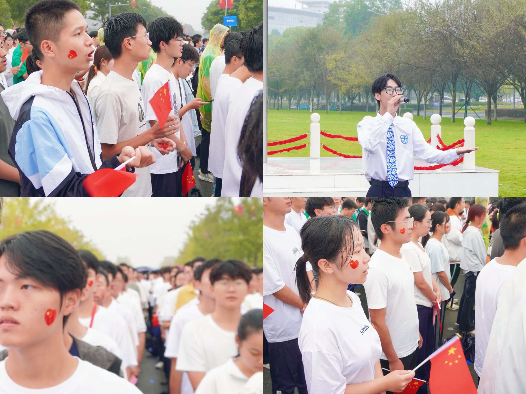 仪式结束后,师生共同欣赏了歌曲演唱《诗画中国》,并以激昂的热情齐声合唱《我爱你中国》(汪峰演唱版本)。在熟悉的旋律中,师生挥动手中的国旗,用歌声表达对祖国的无限热爱与祝福,将现场氛围推向高潮。
