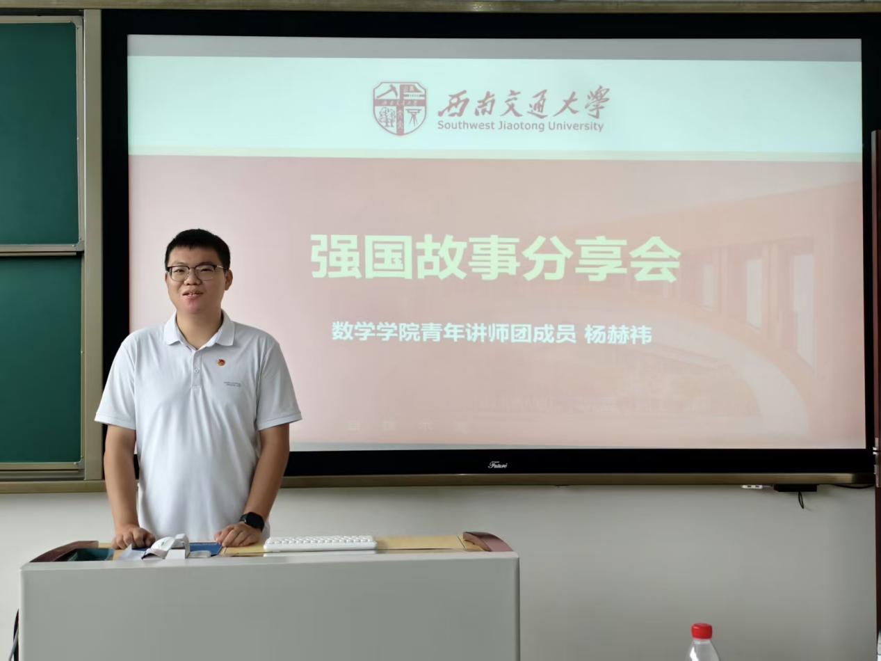 杨赫祎围绕“数学赋能边疆”主题开展强国故事分享会。杨赫祎通过青藏铁路建设中的冻土计算、数字边疆的密码算法应用、帕米尔高原巡边路径的数学优化三个故事,揭示了数学在服务边疆民生与国防中的深远影响,激励同学们练就过硬本领,在强国建设、民族复兴的伟大征程中,书写交大数学人的青春华章。