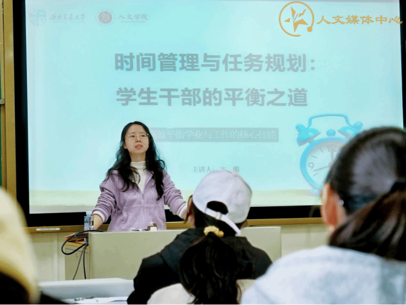 做好时间管理与学业的平衡,是学生干部的必修之道。文璐老师以“时间管理与任务规划:学生干部的平衡之道”为题开展第二讲课程。她围绕学生骨干普遍面临的“学业—工作”双重压力,系统介绍了“四象限法则”,引导同学们科学区分任务优先级,合理安排学习与工作时间。文老师还结合实战经验,分享多种时间管理及任务安排方法,推荐多款高效任务管理工具,强调“学业是根本,规划是关键”,鼓励大家以优秀党员的标准自我要求,在实践中高效运用辅助工具,合理安排时间与工作,实现个人成长与团队目标的协同推进。