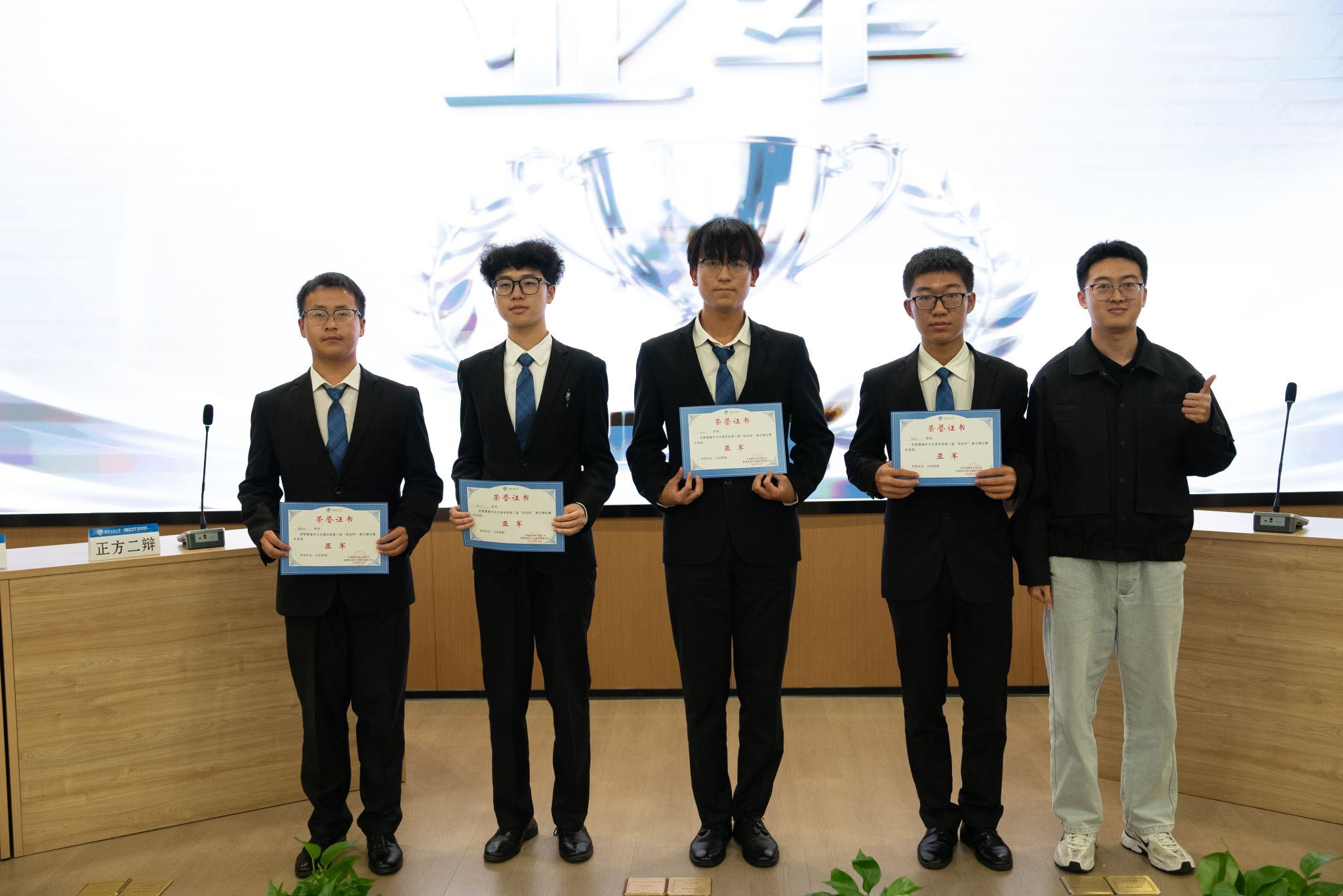 经评委团最终评定,比赛结果为:反方21票,荣膺冠军;正方18票,获亚军。学院团委副书记、学生会指导老师魏岚老师,2025级辅导员老师为获奖队伍及个人颁奖。