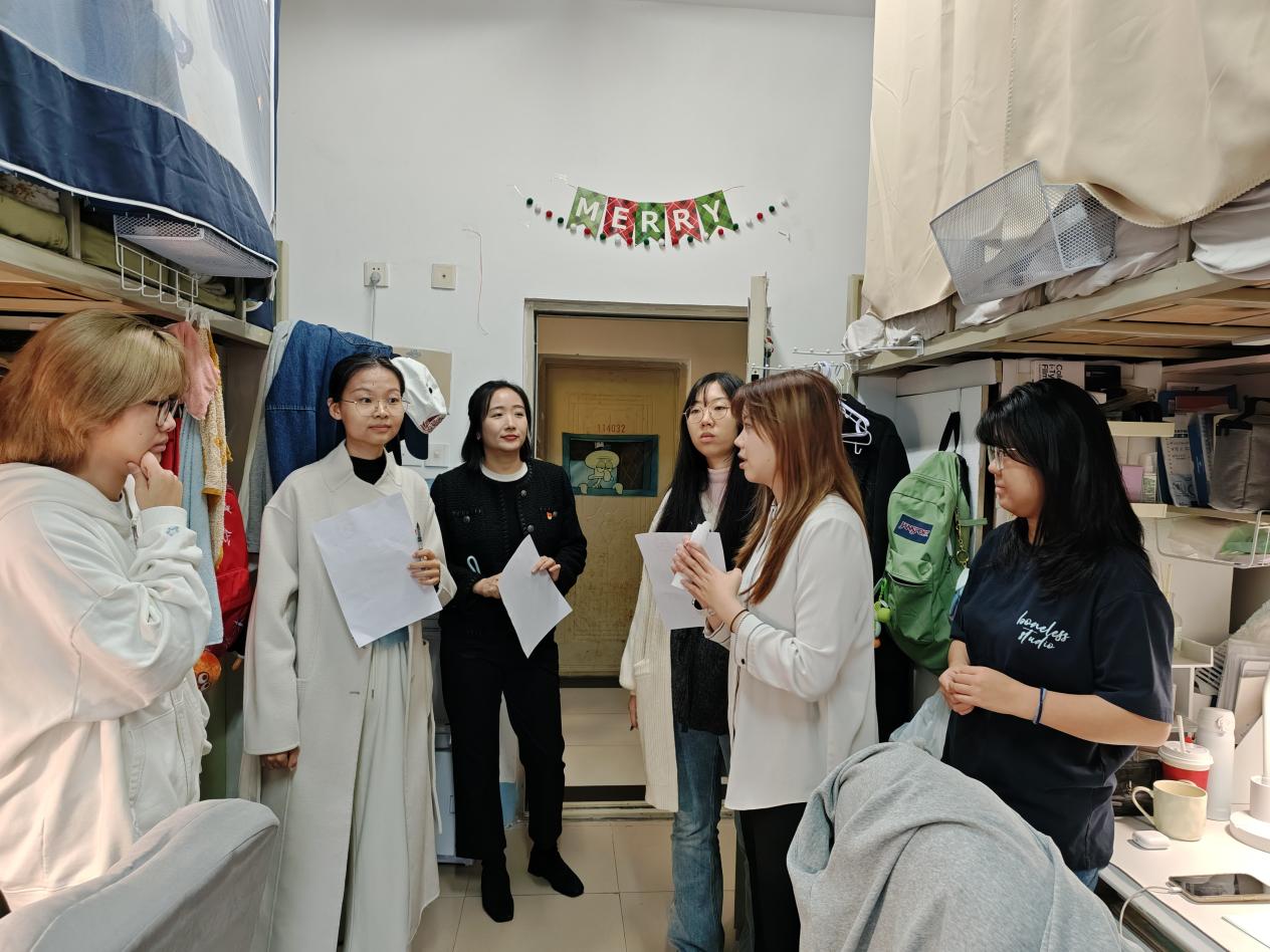本次寝室文化节自启动以来便得到各寝室积极响应,经过严格初赛筛选,12个特色鲜明的寝室脱颖而出进入终审。终审阶段,利兹学院党委副书记刘耀谦带领学生支持中心全体辅导员组成评审团,深入寝室实地走访评审。评审团队围绕安全、卫生、文化三大核心维度,结合寝室实际呈现效果进行量化评分,秉持公平、公正、公开原则,细致挖掘每个寝室的文化亮点与特色。