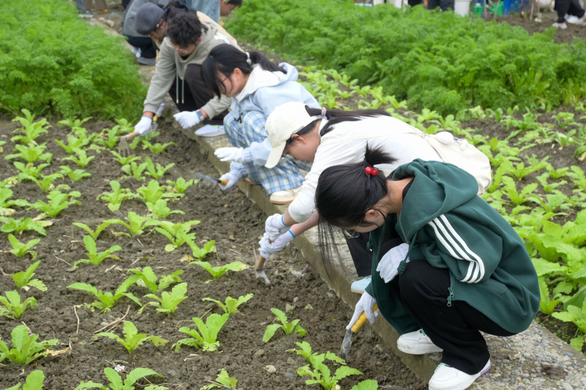 活动当天,同学们有序分工,为已播种的萝卜、胡豆等作物开展除草作业。现场农民师傅还指出白萝卜苗株过密,指导同学们进行间苗梳理。师生们分工协作,在田间地头共同体验农耕乐趣,让实践教育的意义在劳作中落地。