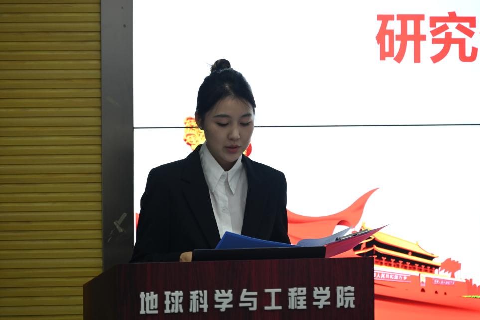 地学学院党委副书记曾洁致辞。她向大会的召开表示热烈的祝贺,并向全体代表致以问候。研究生代表大会是研究生参与学院治理、彰显青春担当的重要平台,她希望全体研究生同学:坚定理想信念,把稳人生航向;深耕学术科研,锤炼过硬本领;勇担时代使命,展现青春作为,将个人理想融入国家发展,以奋斗姿态书写无愧于时代的青春篇章。