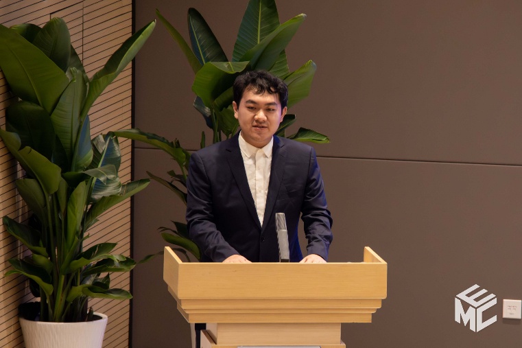 优秀获奖学生代表陈楚涵同学分享了自己的科创赛事经验。他以“绝知此事要躬行”为主题,从竞赛初心、竞赛攻略两个维度分享了自己的成长之路。他结合自身从校赛到国赛的进阶经历,建议学弟学妹们要打好专业基础,主动寻找志同道合的队友,充分利用实验室资源,在实践中克服困难、增长才干,让青春在创新中闪光。