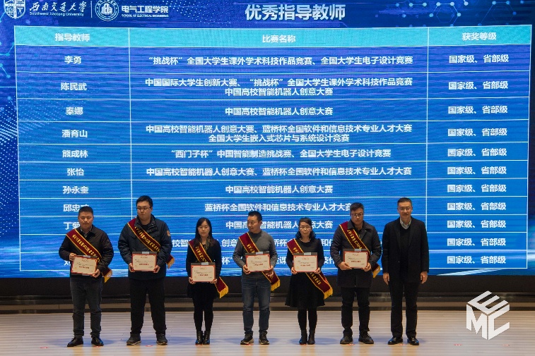 随后,大会对优秀指导教师进行表彰。王斌书记为李勇、陈民武、秦娜、熊成林、丁菊霞、葛鹏等优秀指导教师颁奖,感谢他们在科创育人一线的辛勤付出与卓越贡献。