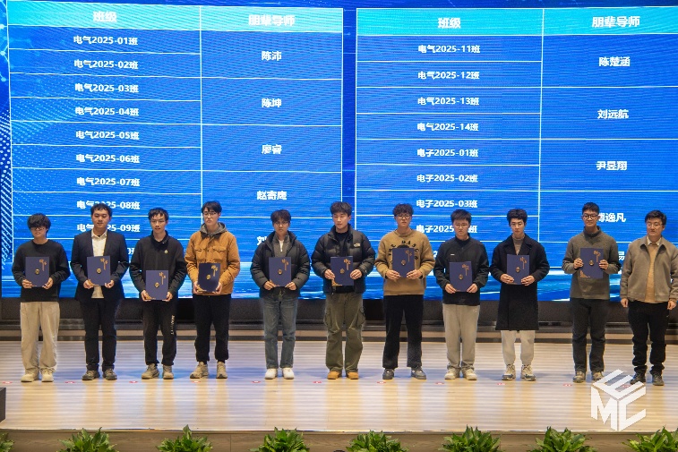 大会还举行了科创启航朋辈导师受聘仪式,韩莹副院长为科创领航朋辈导师陈沛、陈坤、廖睿、赵寄鹰、刘翰林、陈楚涵、刘远航、尹昱翔、傅逸凡、吴陈易十位同学颁发聘任证书。他们将为新生传授经验,为其科创之路提供有力助益。