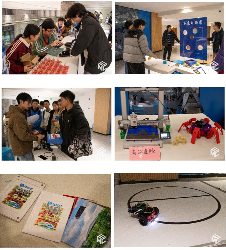 同学们有序穿梭于各个展区,一边认真观摩科创作品、积极向项目团队提问交流,一边参与互动游戏、打卡集章,沉浸式领略科创的独特魅力。现场进行的寻迹小车动态展示更是将科创集市的氛围推向高潮,灵动的小车演示让在场师生直观感受到了科创实践的乐趣。