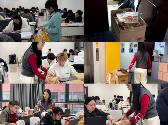 面对紧凑的考试日程与持续消耗的体力,学院的“温暖补给”从不缺席。傍晚场次的考试中,学院准备了小面包,为考生及时补充能量;长达6小时的OTLA考试中,一份份热气腾腾的套餐精准送达。这些贴心举措不仅切实满足了学子们的身体需求,更传递着对他们专注备考、辛勤付出的无声支持。