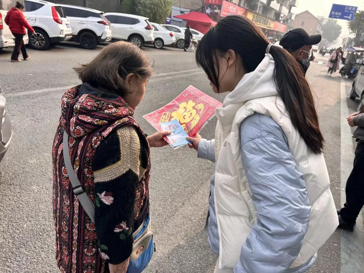 图7. 实践队员派发反诈骗传单和新年祝福小礼品