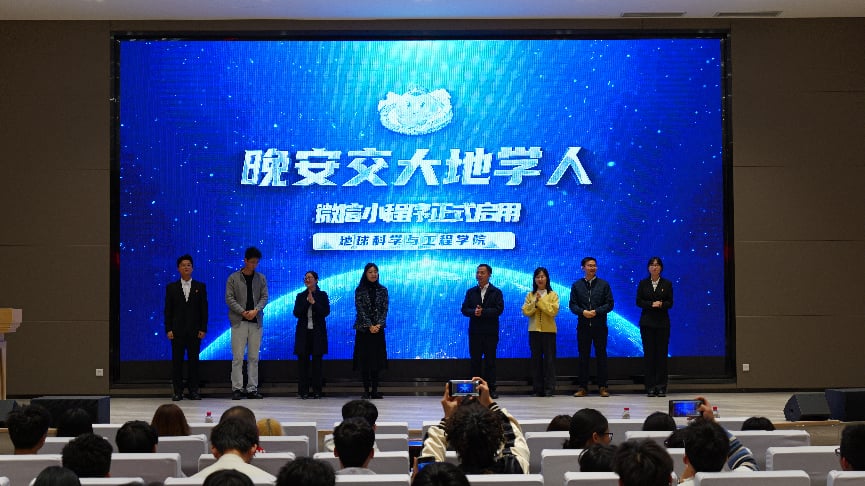 此外,由学院博士生结合学科特长,自主开发的“晚安交大地学人”晚点名小程序在启动会上正式发布。该小程序旨在通过信息化手段,更好地掌握学院学生学习生活情况,提升管理服务的精细化水平。与会领导及学生代表共同启动“晚安交大地学人”晚点名小程序。