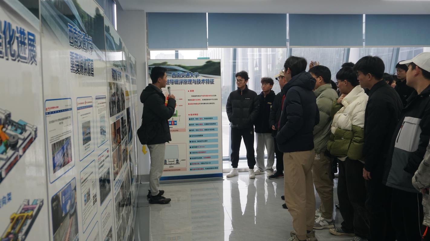 随后在轨道运载研究生会工作人员的有序组织下,同学们先后参观了高温超导高速磁浮交通样车、机车车辆整车滚动振动试验台、脱轨机理试验台、多功能高温超导磁悬浮环形试验线、车-线耦合关系试验台等一系列试验平台。讲解员通过深入浅出的讲解对实验室的试验平台、研究范围、高速列车领域的核心技术进行介绍。听完讲解员同学的介绍,大家纷纷表示大开眼界,对实验室的科研方向与科研地位有了更加深刻的认识。