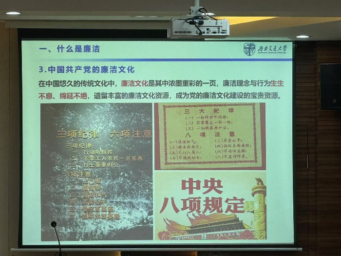 在学员们的热烈掌声中,本次大学生廉洁文化及行为规范主题课程圆满结束。相信学员们聆听胡博老师的细致讲解后,能够将廉洁文化深深扎根于心,把行为规范践之于日常,以青春之姿,扬廉洁之风,为营造一个清正廉洁的交大校园而矢志不渝,坚毅笃行;能够洁身自爱,行稳致远,为成为一个廉洁自律的青年马克思主义者不懈奋斗!