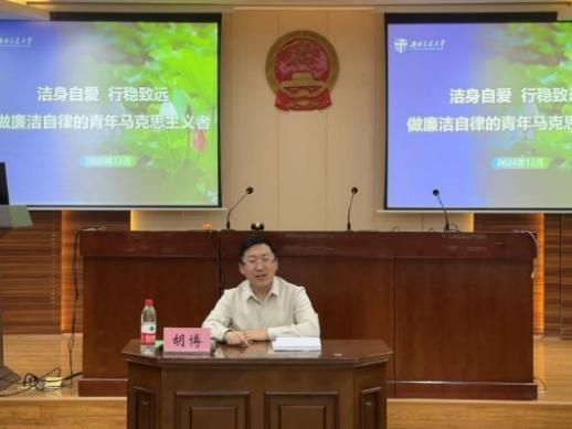 “纸上得来终觉浅,绝知此事要躬行。”首先,胡博老师以诙谐幽默的话语,与大家分享了自己“一个焊工的成长经历”。从一名焊接专业的工科硕士到在地方高校和国家部委任职,胡博老师始终坚守着清正廉洁的道德底线和人生操守,生动诠释了“把握工作机会,坚守人生底线”的重大意义。胡博老师并通过介绍学生违纪违法的相关案例,引导学员们认清红线,坚守底线,将廉洁自律内化于心,外化于行。