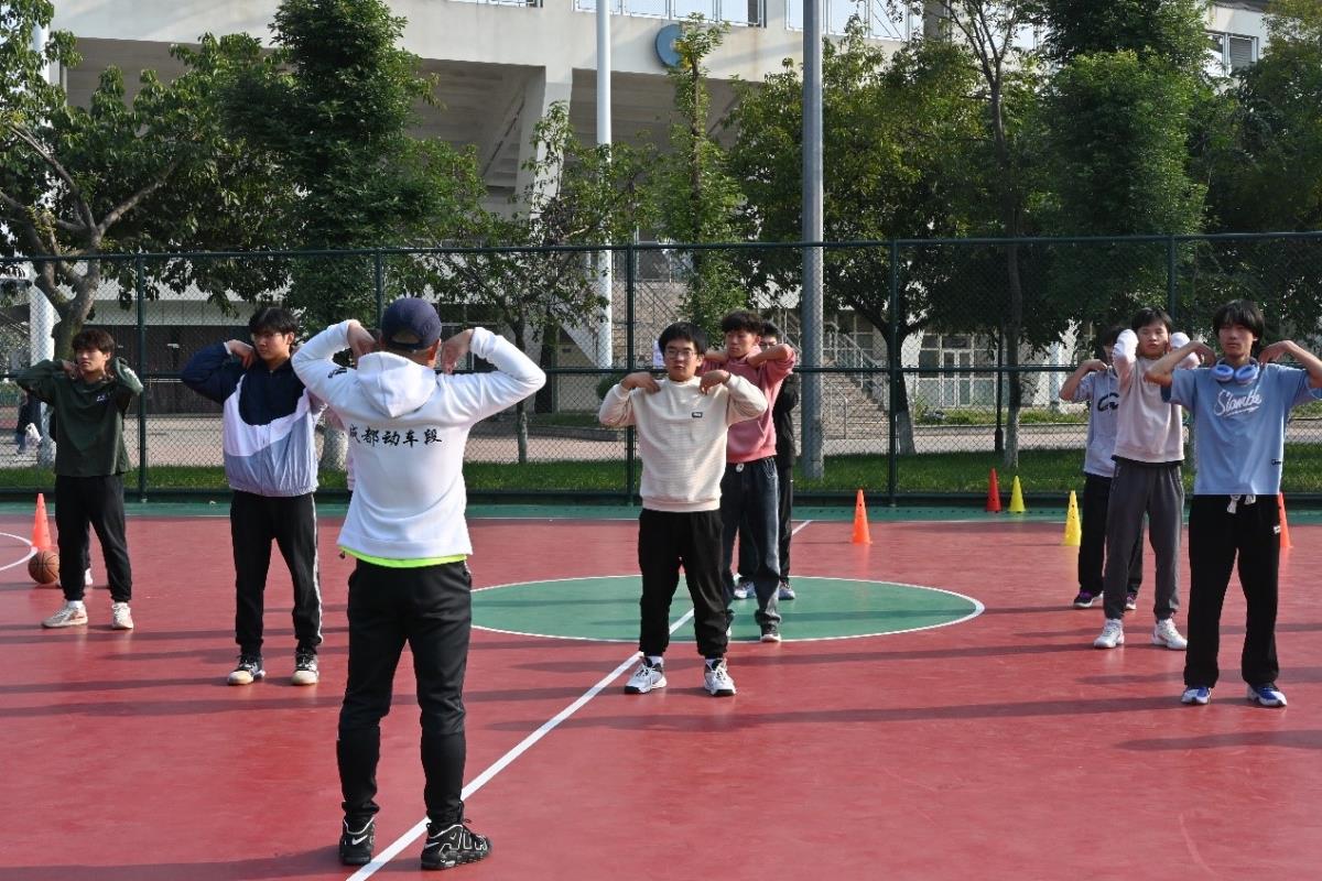 随后,张宏伟校友组织同学们进行热身运动,从上肢到下肢、从肌肉到关节,激活全身,同学们认真跟练,让身体更容易进入运动状态,为后面挑战赛的全力发挥做好充分准备。