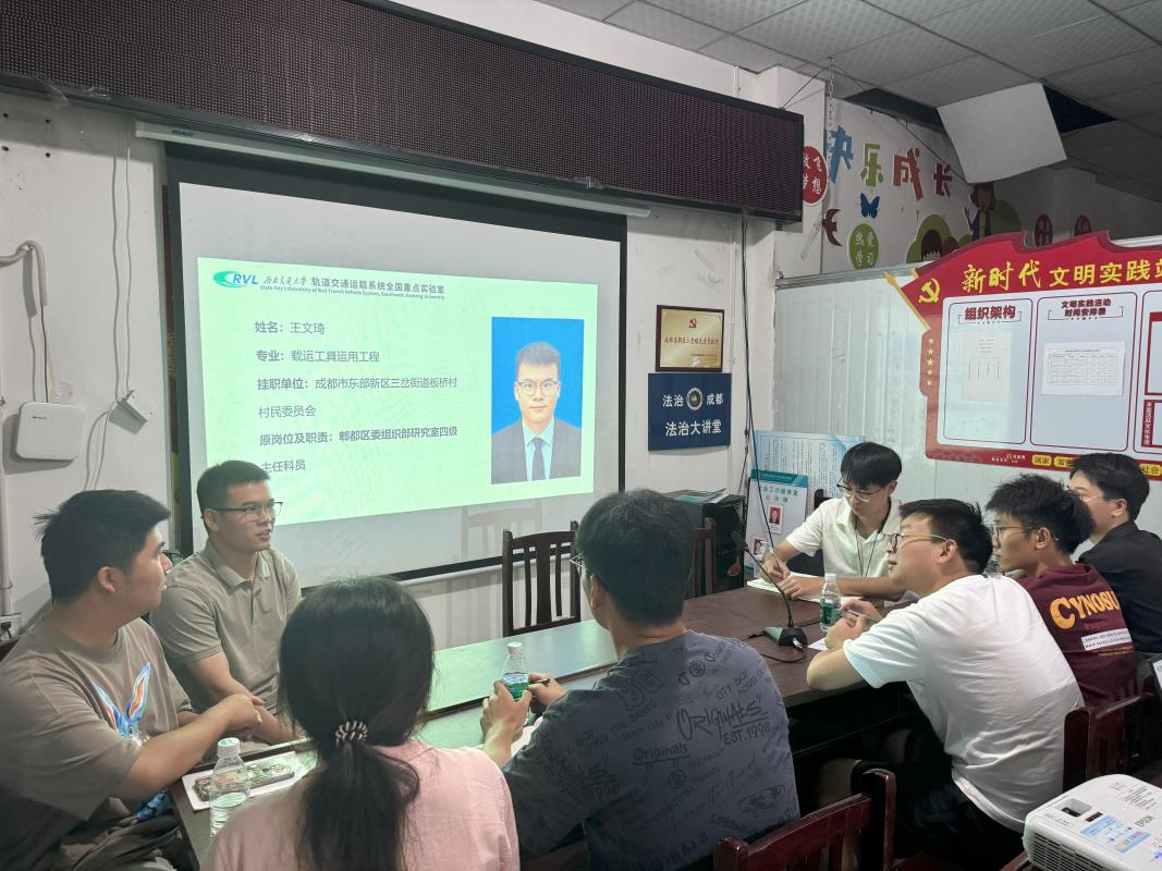 为推动实验室人才培养与就业有机联动、与国家战略相统一、与人才供需有效对接,更好地引导实验室学子树立正确就业观念,为毕业生奔赴祖国基层一线成就事业打下坚实基础,2024年7月14至15日,轨道交通运载系统全国重点实验室2022级辅导员陈宇豪带领10名硕士研究生前往乐山和成都两地开展“笃行志远勇担当,行路胜书访基层”就业引导实践项目活动,与乐山市井研县组织部、乐山市五通桥区宣传部和成都市三岔街道板桥村村民委员会进行了深入交流。