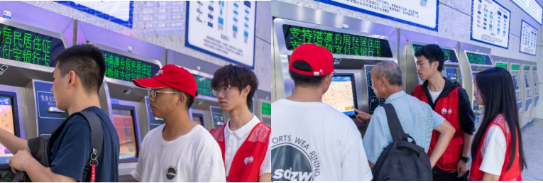 志愿者们驻守在售票大厅,他们身穿统一的志愿者服装,面带微笑,耐心地为每一位前来购票的乘客提供指导,帮助不熟悉售票机的乘客快速完成购票流程,有效缓解了购票高峰期的压力。