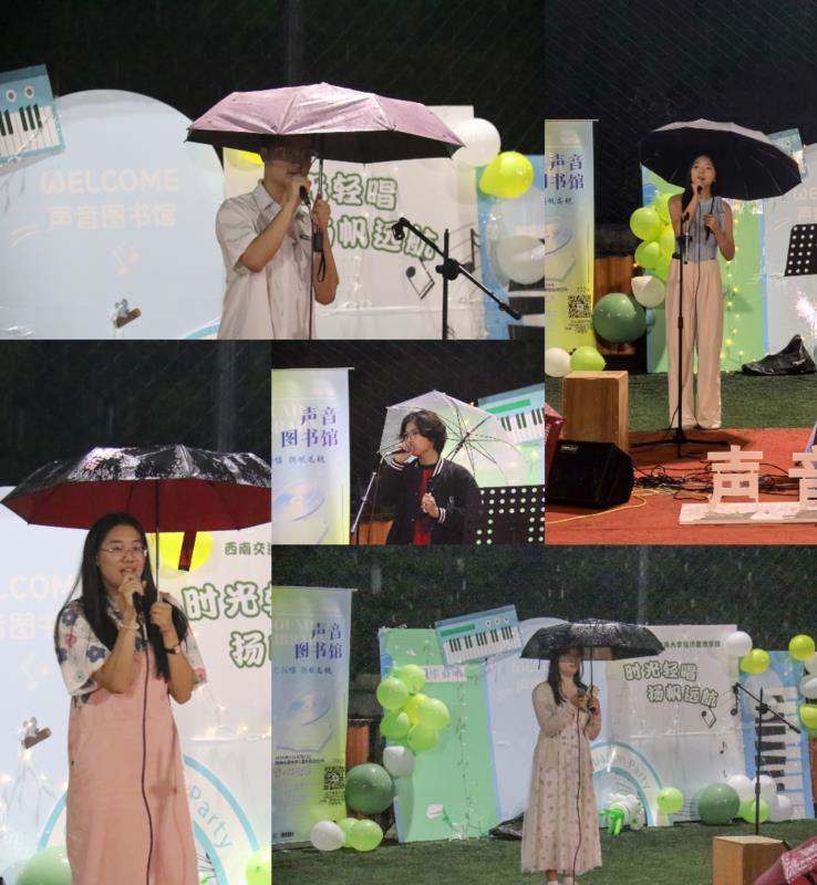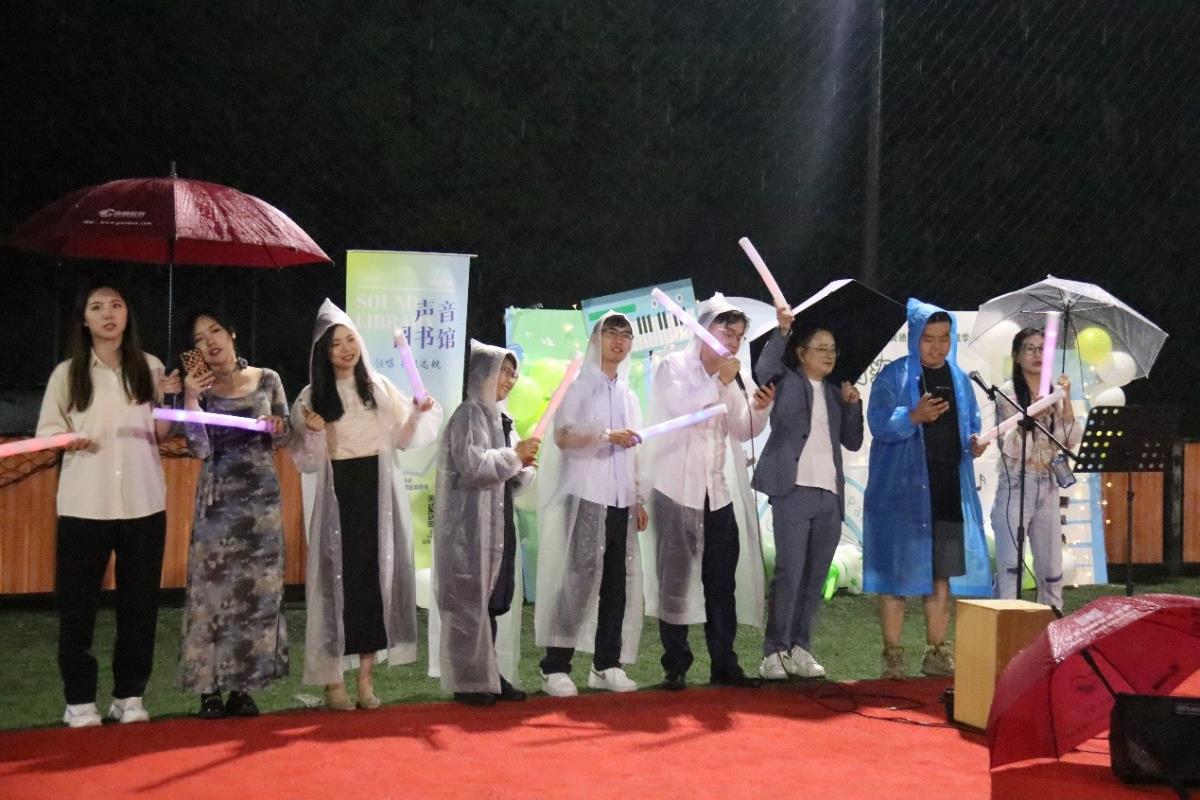 本次“声音图书馆”活动由“最具代表性歌声” 、“毕业生音乐节目”两部分组成,呈现了一场声情并茂的演出。蒙蒙细雨之中,主持人介绍出席嘉宾并宣布比赛开始,伴随着萨克斯《不眠之夜》婉转曲调,“声音图书馆”决赛正式拉开了帷幕。