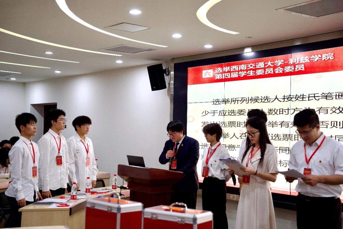 2024年6月14日晚,利兹学院第四次学生代表大会在犀浦校区3号教学楼X30519顺利召开。利兹学院党委副书记刘耀谦,专职组织员屈嘉琪,团委书记邱君捷,团委副书记刘爽、李东杰、刘妍,学生支持中心辅导员徐进秋、校学生会主席团成员颜道申及76名学生代表参加本次大会。大会由学生会主席团成员寇宸赫主持。