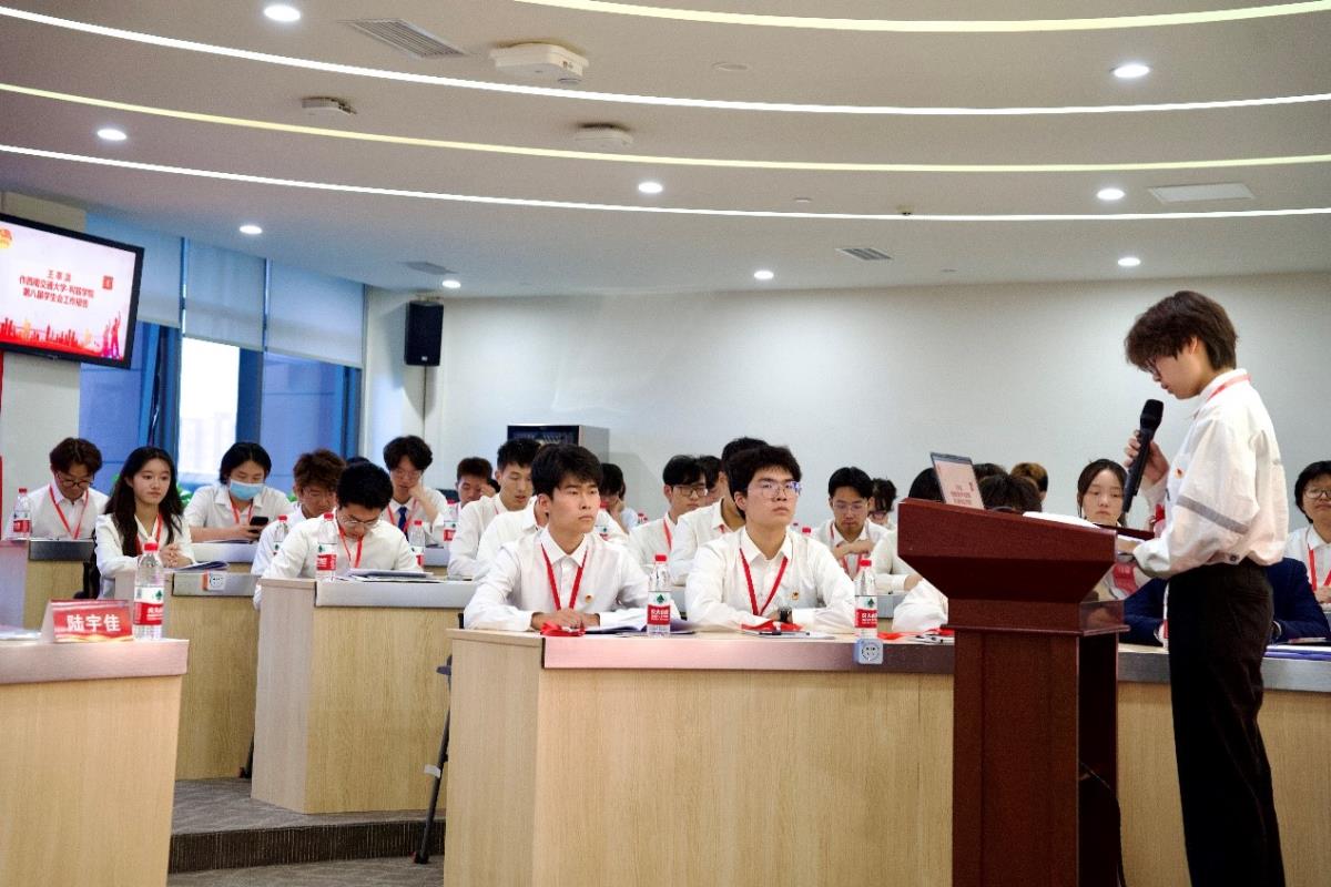 随后,全体代表听取了利兹学院学生会主席团成员王莘淇作题为《奋楫笃行 挺膺担当》的第八届学生会工作报告。王莘淇指出,利兹学院学生会应始终坚持正确的政治方向,紧密围绕学院师生核心需求,深入推进组织内部的自我革新与提升,为学校和学院的长远发展贡献更多力量。