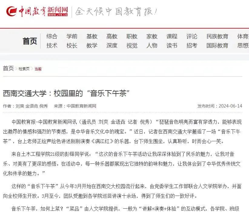 【人文】中国教育新闻网报道我院美育活动“音乐下午茶”