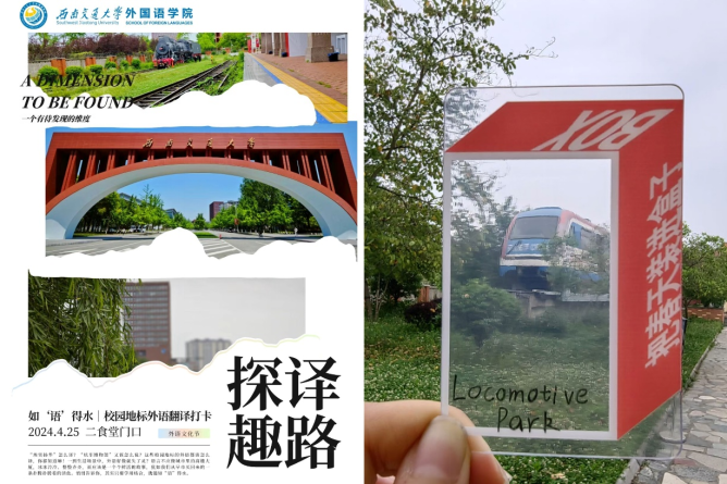 4月25日,“如‘语’得水”——校园地标外语翻译打卡顺利举办,本次活动共收集到来自外语爱好者的拍照打卡十余份。同学们在外语与中文互译间展现无双才华,珠联璧合,字字皆景,熠熠生辉,句句含情,这场翻译打卡盛典,不仅是语言艺术的交响,更是青春才华的炫彩舞台。