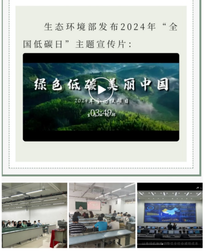 此外,活动还包括,号召各团支部集中观看2024“全国低碳日”主题宣传片;积极调动青年志愿者协会开展“无废校园,节能减碳”、“变废为宝——旧物利用比赛”等志愿服务活动。本次系列活动旨在增强同学们以实际行动践行“节能减碳”的意识,丰富同学们的校园文化生活,在陶冶艺术情操的同时感悟“绿色低碳”的深度内涵。