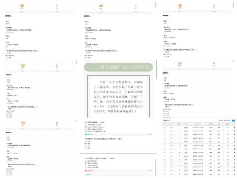 正值2024年度全国节能宣传周之际,为深入宣传贯彻低碳发展理念,不断普及节能意识,增强全校师生低碳节能的主人翁意识,开展了“绿色低碳”知识有奖问答活动,题目设置具有较强的科普性和启发性。活动期间,全校师生广泛参与,在知识竞技中不断健全了大家对低碳节能的认知和理解。参与者纷纷表示,将“绿色低碳”意识“内化于心,外践于行”是每位公民义不容辞的责任。