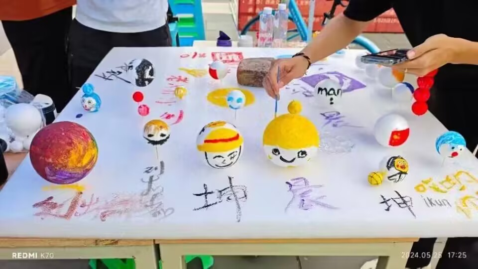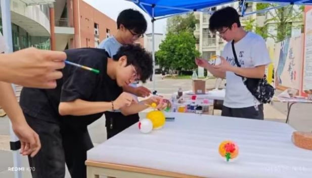 在本次活动中,同学们使用彩色颜料和画笔,在泡沫球上尽情挥洒创意,用色彩描绘内心的世界,用自己的无限创意诠释了心灵的色彩,让小球焕发出独特的光彩。志愿者们尽职尽责,精心布置活动现场,引导前来参与的同学将自己的内心所想以色彩的形式展现在一个个小球上,让一颗颗孤独的星球连结成一片交融的星海。