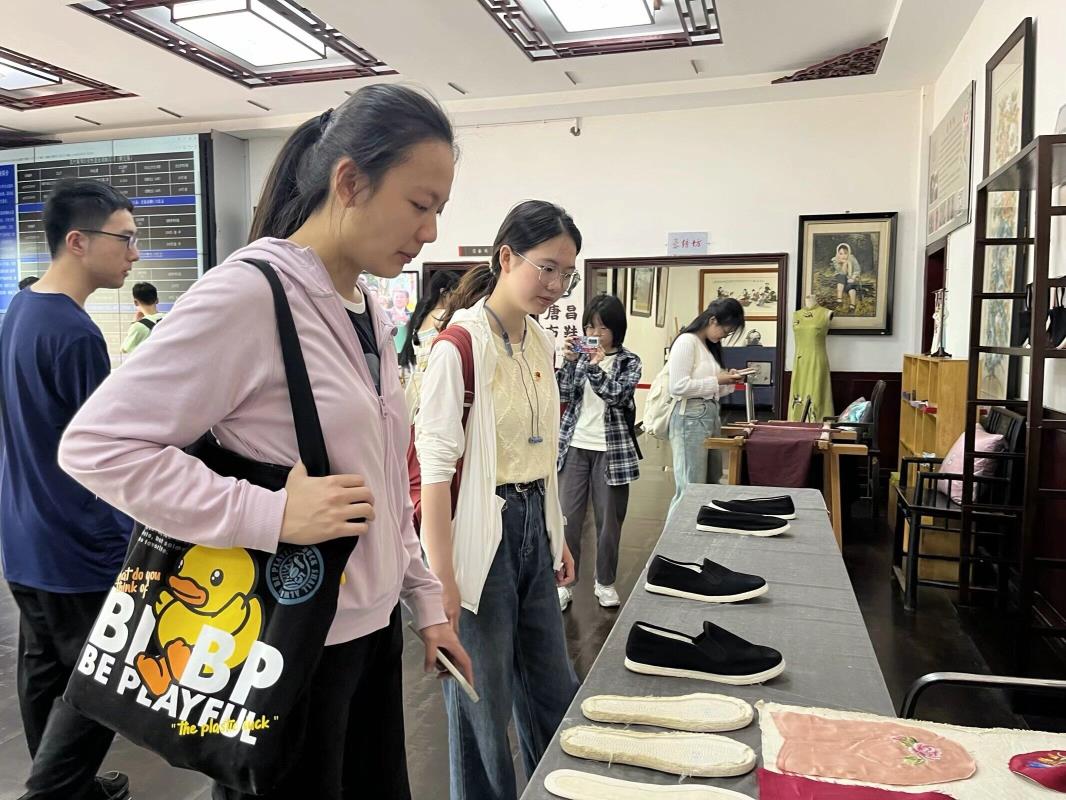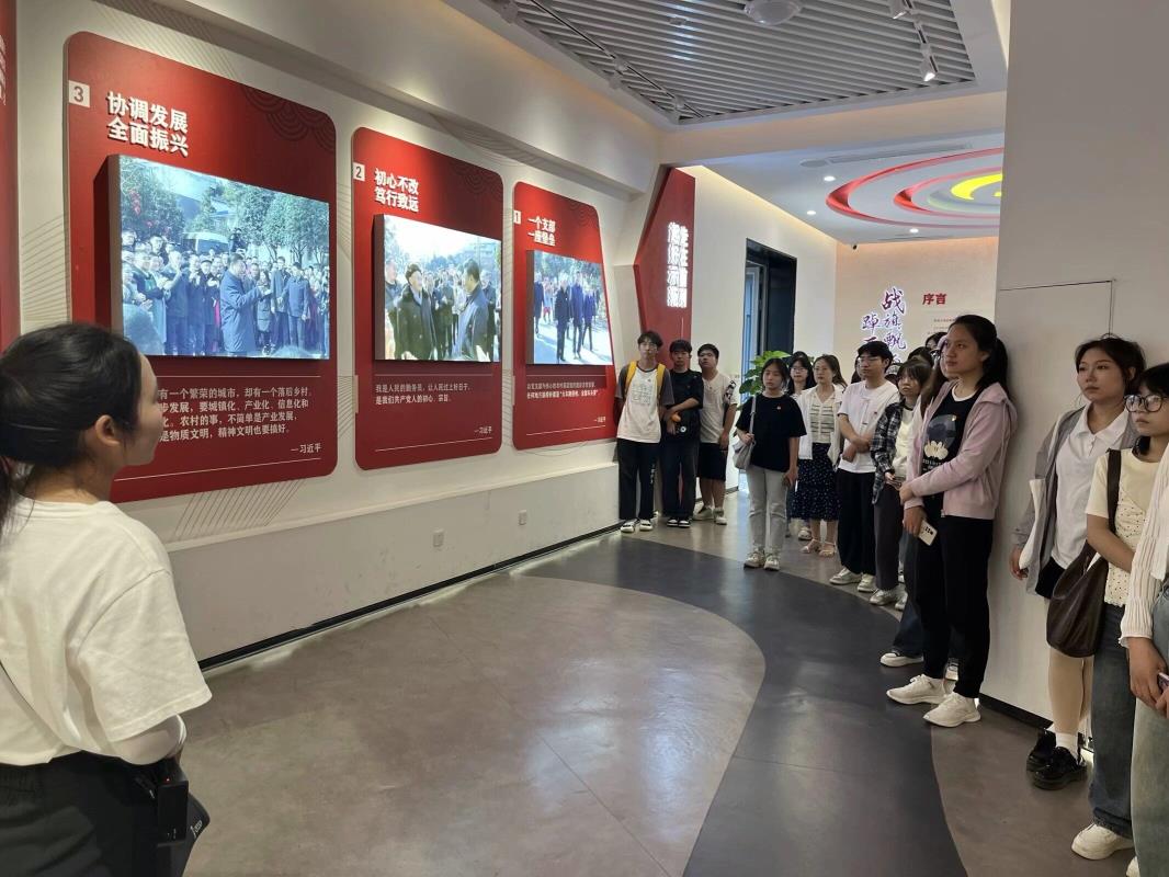 活动开始,支部成员跟随着讲解者的步伐,一同参观了战旗文化广场、初心馆、党群服务中心、乡村十八坊等地点。初心馆参观中,馆内展览分为“起好示范,走在前列”、“感恩奋进,牢记嘱托”等部分。讲解员讲述了一双唐昌布鞋的故事,并将布鞋的寓意告诉同学们。唐昌布鞋寄托着“行必履正”的含义,“千层底”一针一线,做得扎实,行得踏实;层层粘贴,张张翻晒,容不得一点闪失。