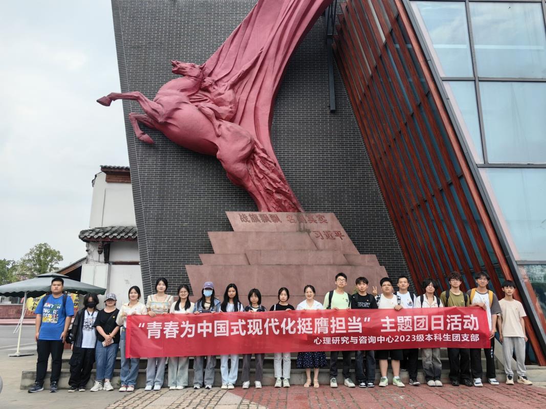 2024年5月18日,心理中心2023级团支部在战旗村开展主题为“青春为中国式现代化挺膺担当”的学习活动,由心理中心团委书记樊菊带队并主持本次活动。