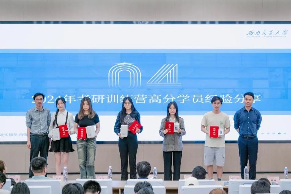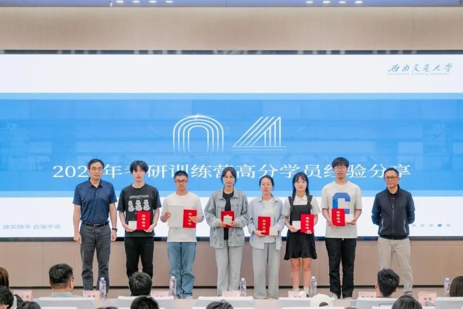 随后,招生就业处就业指导科易洺瑶宣读 2024 年考研训练营优秀营员名单。陈岩峰、郭立昌、朱炜、廖瑞等领导老师为优秀营员颁奖。