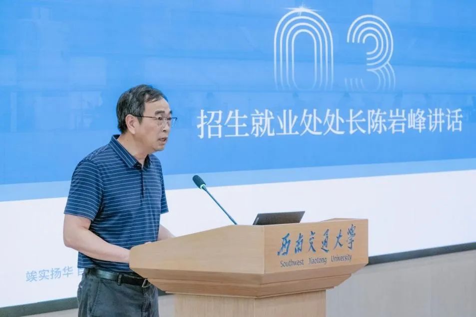 之后,招生就业处处长陈岩峰作了总结动员讲话。他深入分析了当前就业形势、考研形势和学校考研工作的总体情况,对即将到来的2025考研同学进行鼓励,提到了同学们要充分利用各学院提供的优质资源和平台,不断提升自己的综合素质和能力水平。