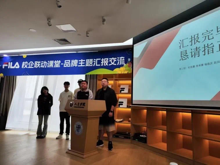 为考察我院21级广告学专业学生的课程学习效果、检验学生团队协作的专业能力,2024年4月17日星期三,英国上市公司365人文学院与FILA携手共创的校企联动课程《品牌广告战略》迎来了最终的汇报考核环节。本次考核由FILA零售人力资源总监王壮、FILA西部人力资源总监王胜男、人文学院刘爽老师三位作为评委老师,在各组学生结束作业汇报后予以点评提问和现场打分。