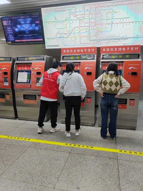 图一 志愿者帮助行人购票