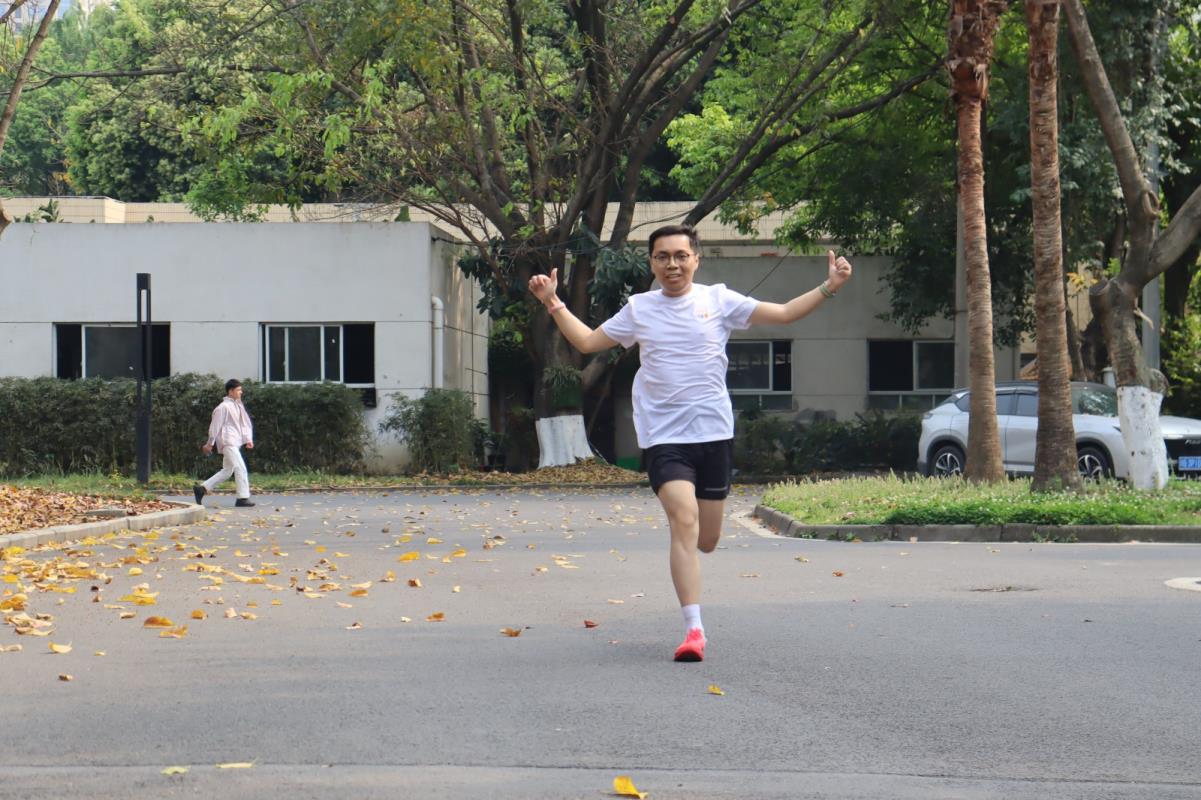 在进行简单的热身准备后,15点50分,随着一声令下,30余名师生火热开跑。环校跑路线由实验室大门出发,经詹天佑体育馆,绕校内唐臣路一圈,最终回到实验室,全程约2.5KM。沿途各个路口设有指引牌,并有实验室研究生会志愿者维护活动秩序,保障活动安全,全程为运动员提供指引和支持。