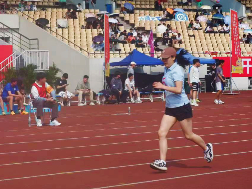 在次日的教职工组女子400米决赛中,马亚雯老师夺得了全校第七的好成绩!用自己的飒爽英姿挥洒汗水,方显巾帼本色。外国语学院黄钰婷同学,在学生甲组女子400米决赛中,夺得了全校第一名的好成绩,并且突破交大极限,创造新的交大记录,这也是本次运动会全校唯一一项破纪录的项目!她成功用自己的青春身姿定义新的交大速度!