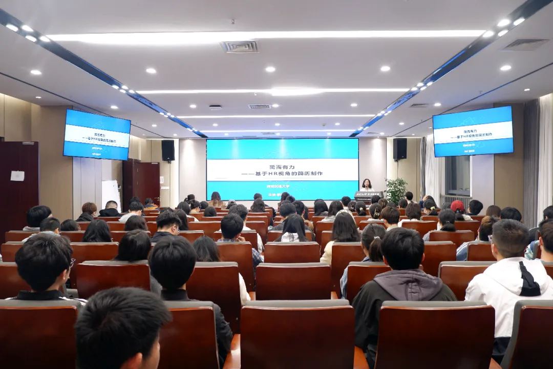 在讲座接近尾声时,马琼老师赠与同学们一句寄语:“我们努力奔跑,只为追赶曾经那个披星戴月的自己。愿披星戴月的你们,乘风破浪。”至此,本次简历指导分享会在热烈的掌声中圆满结束。