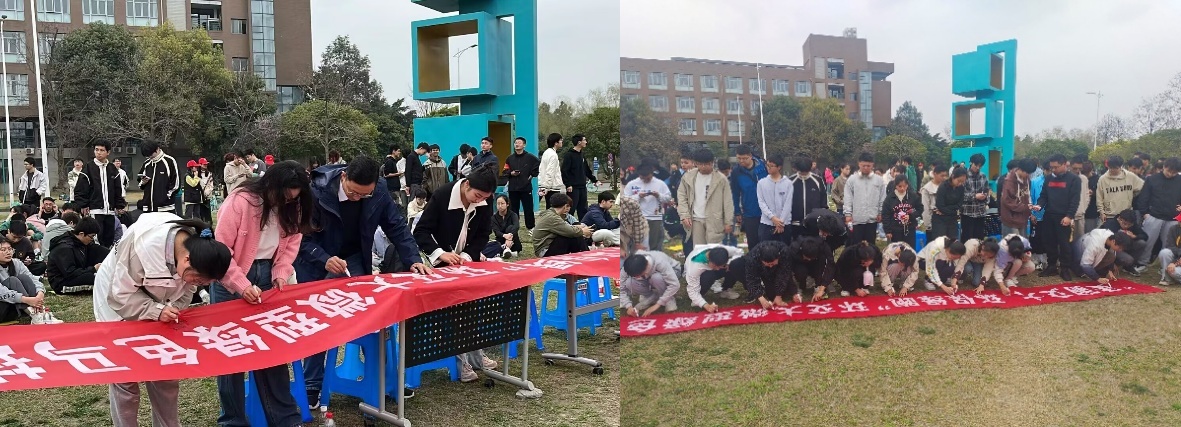 本次活动吸引各学院130余名同学参与,跑步正式开始前老师和同学们在横幅上签名或写下环保标语并合影留念。