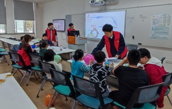 图一 活动结束后志愿者与小朋友们合照