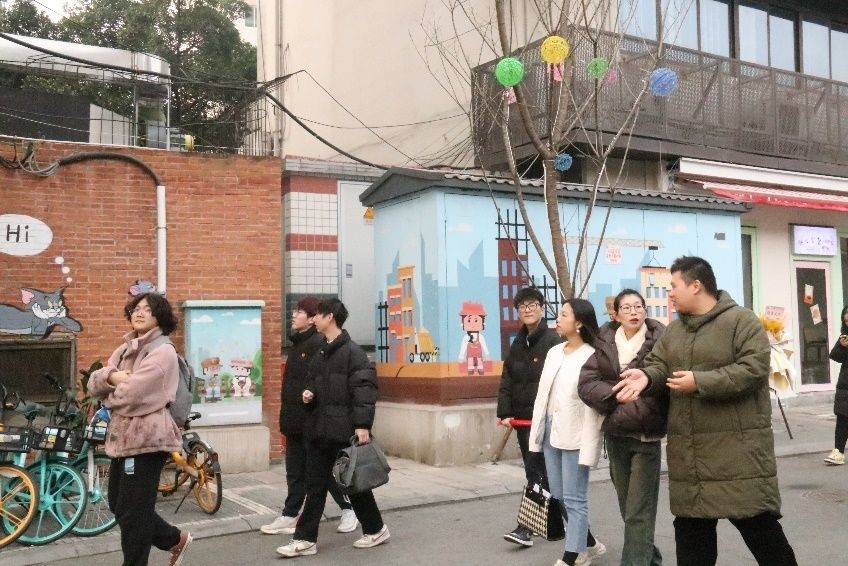 实践团队通过开展一系列实地调研活动,以更加全面具体地深入了解社区更新建设各方面的基本情况。在社区团支书许呈祥同志的带领下,对匠人里特色街区、留声记创新创业基地和社区会客厅进行了实地调研,流动式采访社区居民,了解社区群众的生活样貌,以获取社区未来发展和改善方向的宝贵群众意见。
