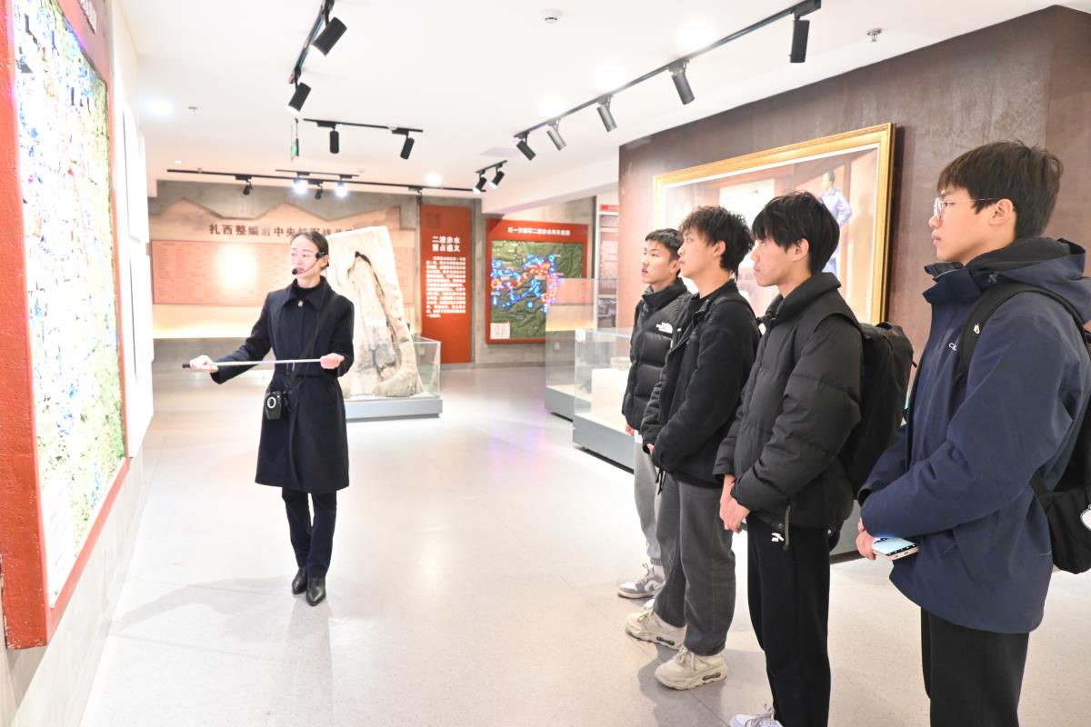 1月21日上午,实践队首站来到了四渡赤水太平渡陈列馆。馆内陈列丰富,一件件实物、一张张图片,生动再现了红军英勇奋斗的光辉历程。师生们仔细聆听讲解员讲述红军长征在古蔺的革命历史,深入了解红军长征途中的艰辛。