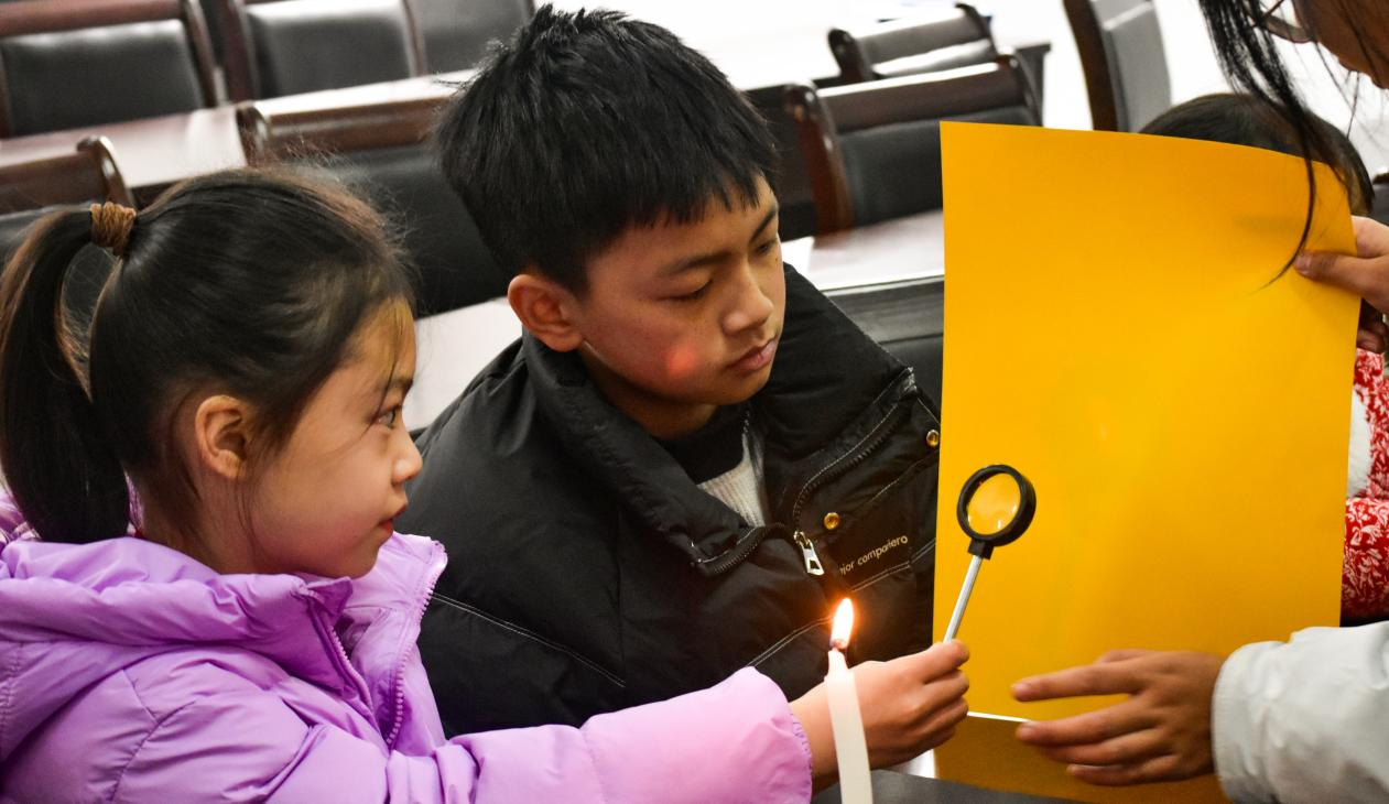 志愿者带领小朋友完成蜡烛成像实验