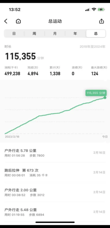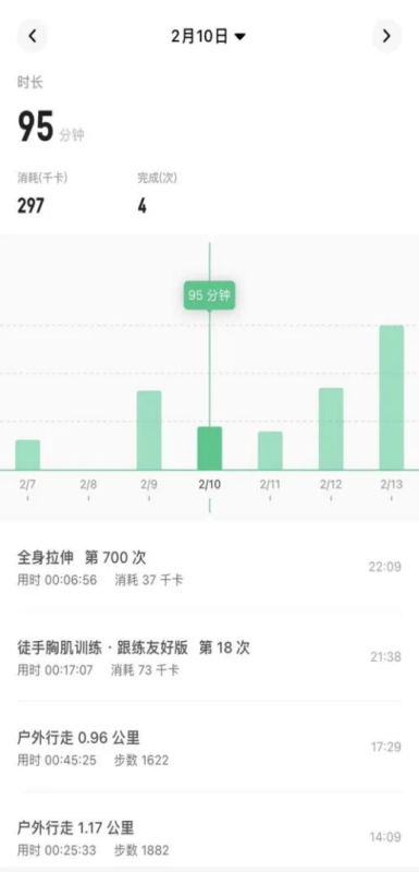 2020级李金垚同学在假期里的运动全面丰富,从行走到训练,系统地进行着锻炼计划。