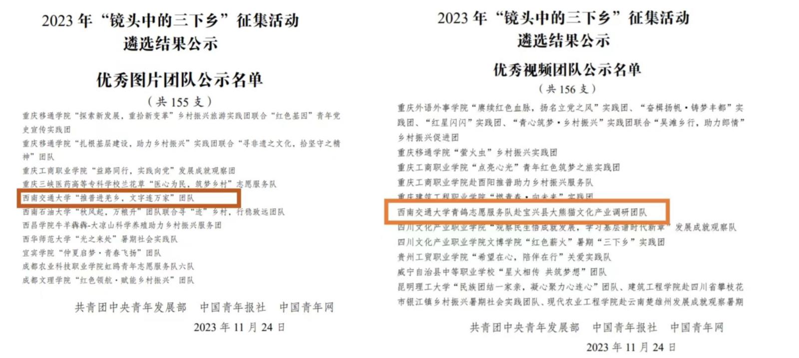 经济管理学院两支大学生暑期“三下乡”团队入选2023年全国大学生暑期社会实践优秀团队,6支队伍获评寒、暑假校级社会实践优秀队伍,19名同学获优秀实践队员,4名老师获学校共青团实践育人优秀指导教师,收到实践地反馈信、感谢信共计20余份。实践队伍获中青校园、中国大学生网、今日头条、中国共青团官方杂志、“三下乡”官方微博等国家级媒体报道27篇,四川法制报、四川学联、四川共青团官方微博等省级媒体报道7篇,以及县、市级等其他报道总计77篇。实践活动受到了社会的广泛关注,取得了积极的社会影响。同时,总结、表彰、宣传,树立典型,强化我院实践育人成效,先后发布我院实践队伍风采展新闻及推送6篇,展现了交大经管学子的良好风貌。