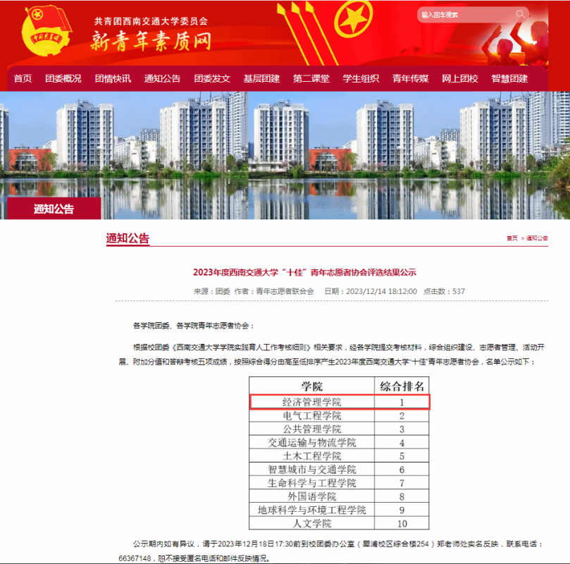 2023年经济管理学院青年志愿者协会在校团委、学院党委、团委坚强正确领导下,全体成员团结一心,步调一致,工作认真务实,积极探索实践育人模式,创新性地开展各项社会实践和志愿服务活动,圆满地完成了各项任务,有力地配合了校、院团委的工作,协会各方面都洋溢着生机和活力。在学校年底进行的“2023年实践育人工作”考核中,我院青年志愿者协会综合考评第一,获得“十佳青协”荣誉,取得了优异的成绩。
