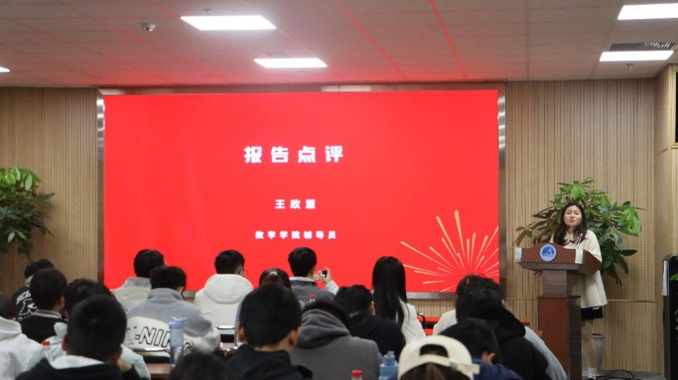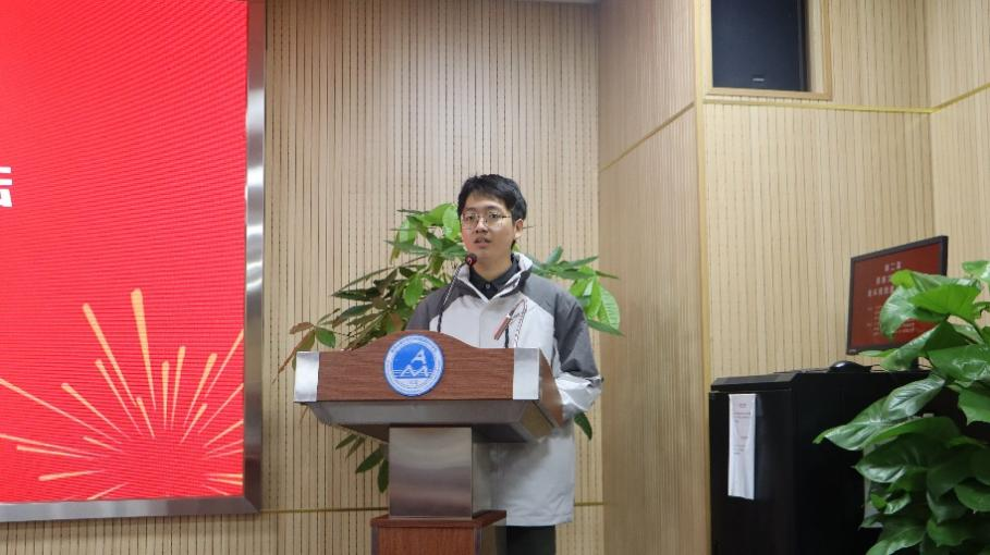 力学2022级拔尖班团支书陈帅铭同学进行了题为“力拔头筹,气壮山河——双严精神下的力学拔尖班建设”的主题报告,生动地展现了力学拔尖班多样的集体建设活动和班级的优秀成果。